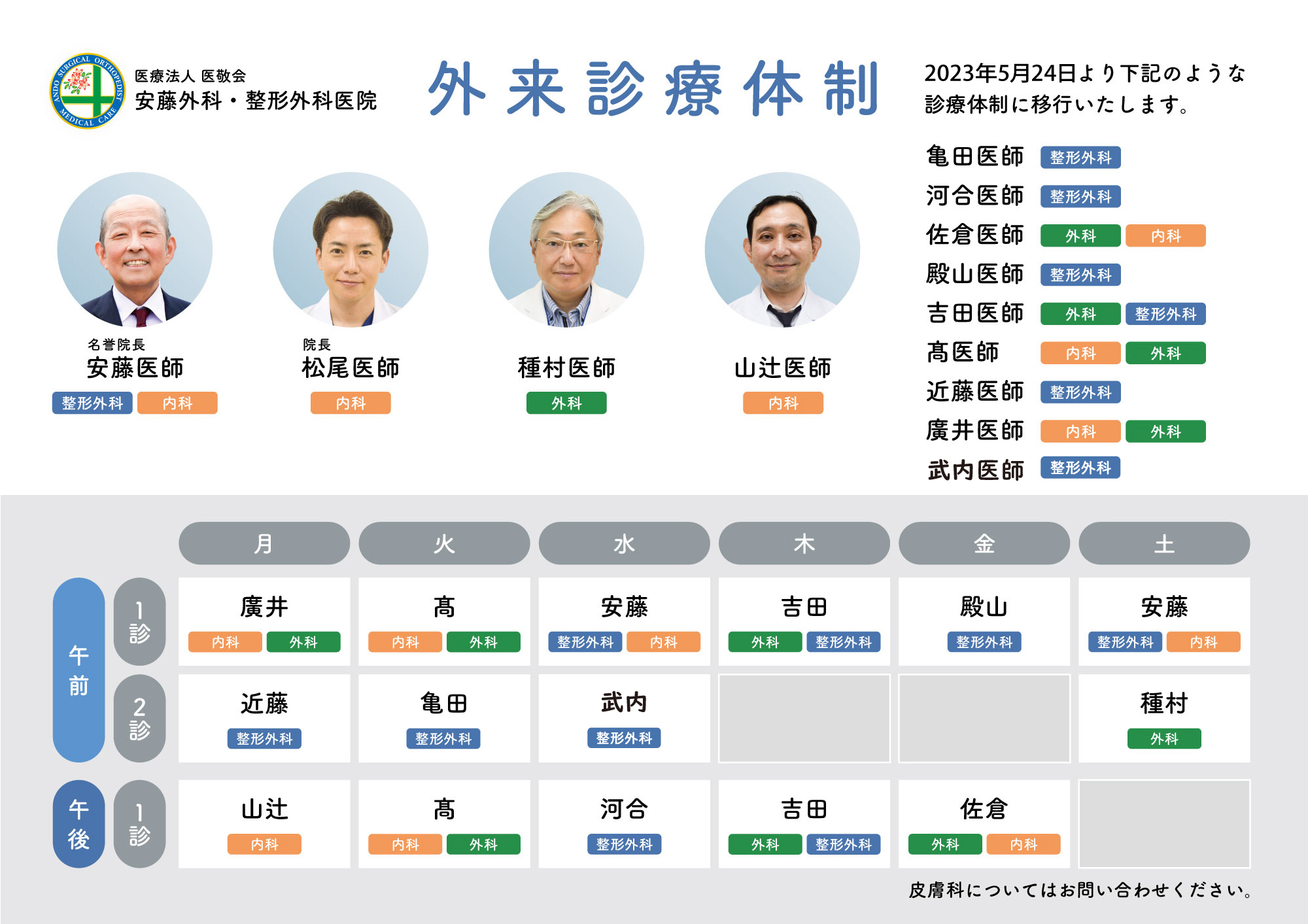 2023年5月24日より上図のような診療体制に移行いたします。