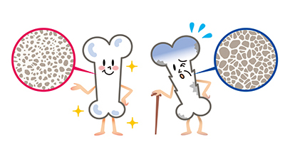 骨の密度と質の低下により、骨が弱く、脆くなる病気です。転倒などにより骨折しやすくなり、発症後は適切な治療をおこなわなければ、骨折後に寝たきりのリスクも大いにあります。定期的な検査による予防が肝心です。
