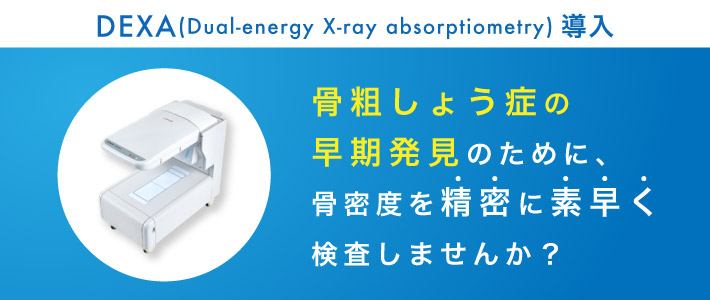 当院では骨粗しょう症の診断に有用とされるDEXA(デキサ)法を用いたより正確な骨密度測定が可能となりました。